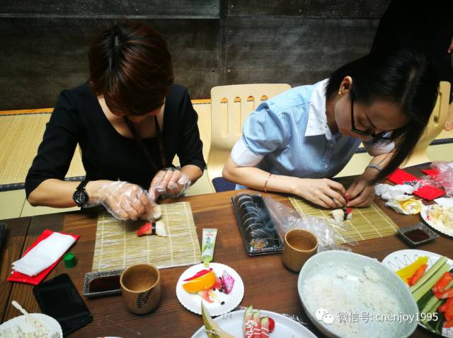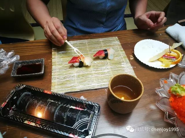 ▲制作壽司現(xiàn)場~精美的卷壽司和手握,讓人忍不住食指大動(ˉ﹃ˉ)