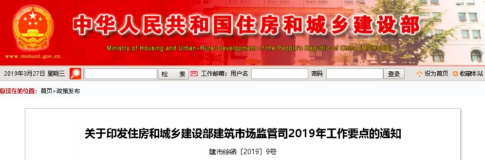 住房和城鄉(xiāng)建設(shè)部建筑市場監(jiān)管司2019年工作要點(diǎn)