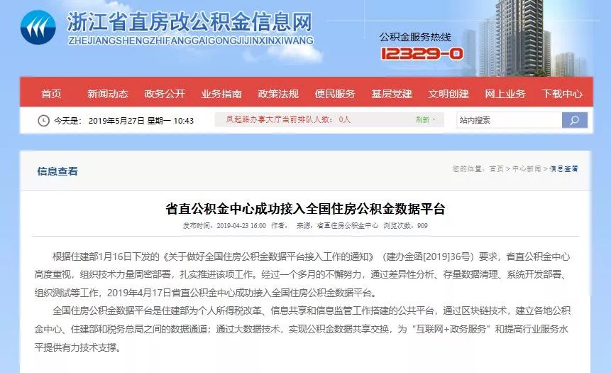 4月17日,浙江省直房改公積金信息網(wǎng)發(fā)布《省直公積金中心成功接入全國住房公積金數(shù)據(jù)平臺》的通知。
