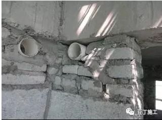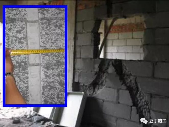 4、打鑿線槽不規(guī)范,直接在砌體墻上打鑿線槽,破壞砌體墻整體穩(wěn)定性,后期抹灰易出現(xiàn)開裂隱患。