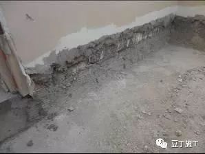 標(biāo)準(zhǔn)做法:廚衛(wèi)間反坎澆筑前,新舊混凝土接觸面必須鑿毛、清理。