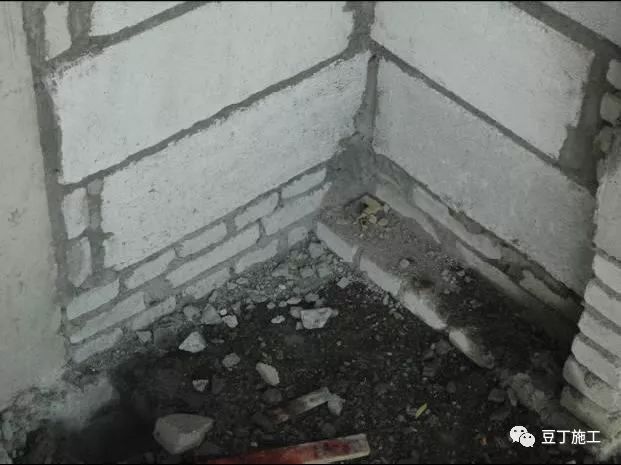 標(biāo)準(zhǔn)做法:內(nèi)外墻體及斜頂磚部位必須設(shè)置預(yù)制三角磚,確?;铱p密實(shí)。