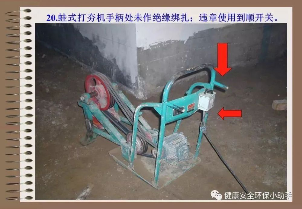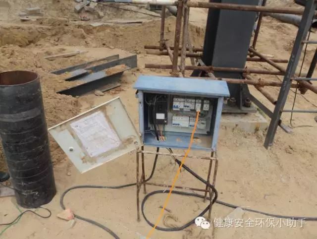 1、無防雨措施,缺少配電箱,直接放在地面2、不符合一機(jī)一閘一保護(hù)要求