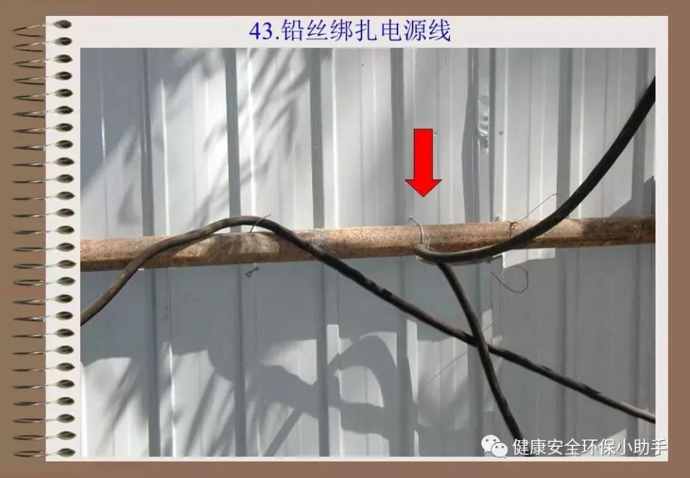 1、電纜線使用鐵絲固定2、電纜線和鋼結(jié)構(gòu)在一起無隔離措施