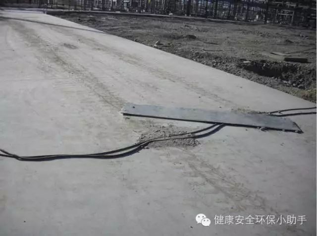1、電纜線未加過路防護(hù)2、鋼板壓在電纜線上