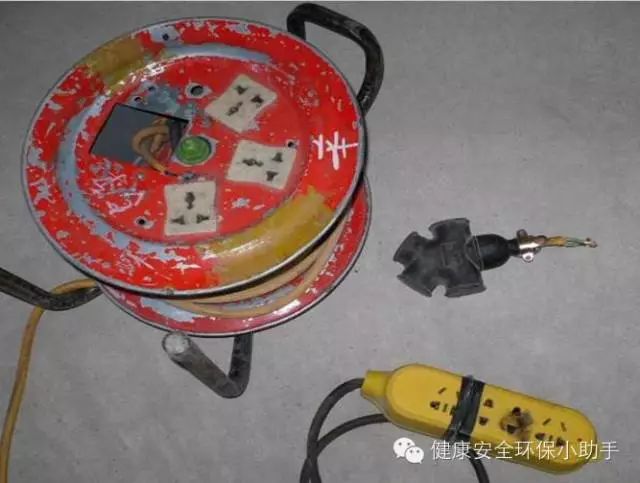 1、使用民用插盤2、插線盤缺少漏電保護(hù)器
