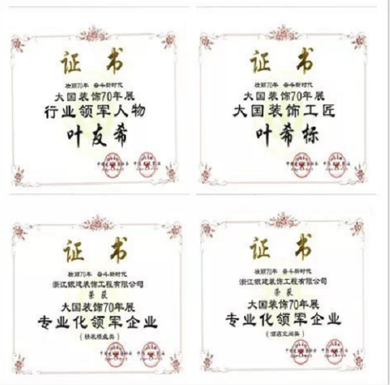 會上發(fā)布了大國裝飾70周年一系列重要榮譽(yù),浙江銀建裝飾工程有限公司獲評 “大國裝飾70年——專業(yè)化領(lǐng)軍企業(yè)”、董事長葉友希獲評 “大國裝飾70年——行業(yè)領(lǐng)軍人物”、副董事長葉希標(biāo)獲評“大國裝飾70年——大國裝飾工匠”三項(xiàng)殊榮。